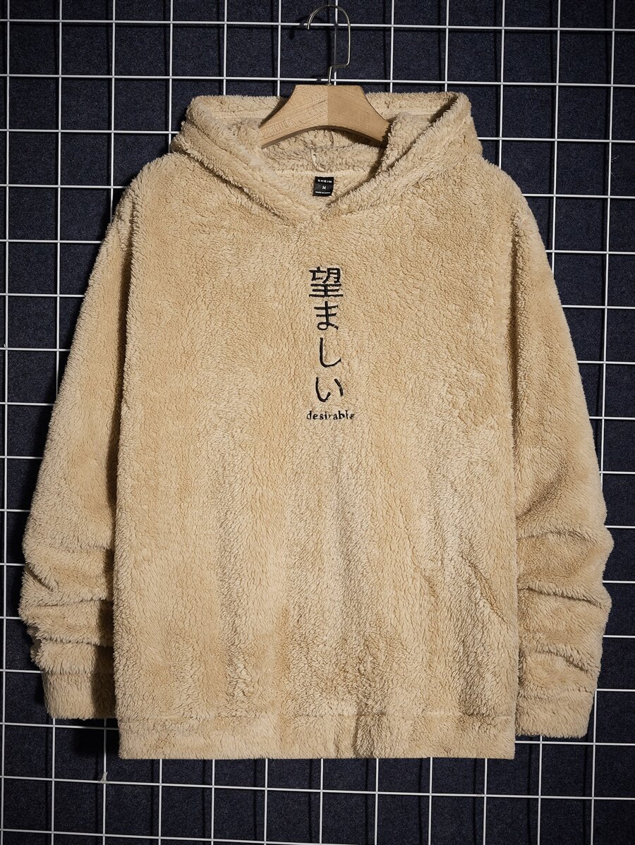 Homme Sweat-shirt à capuche à broderie lettre chinoise en flanelle