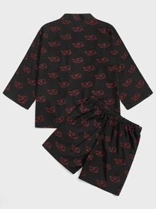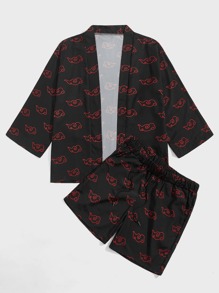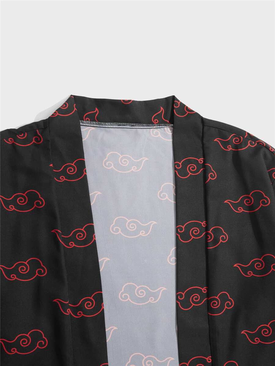 Homme Kimono à imprimé nuage ouvert & Short à cordon