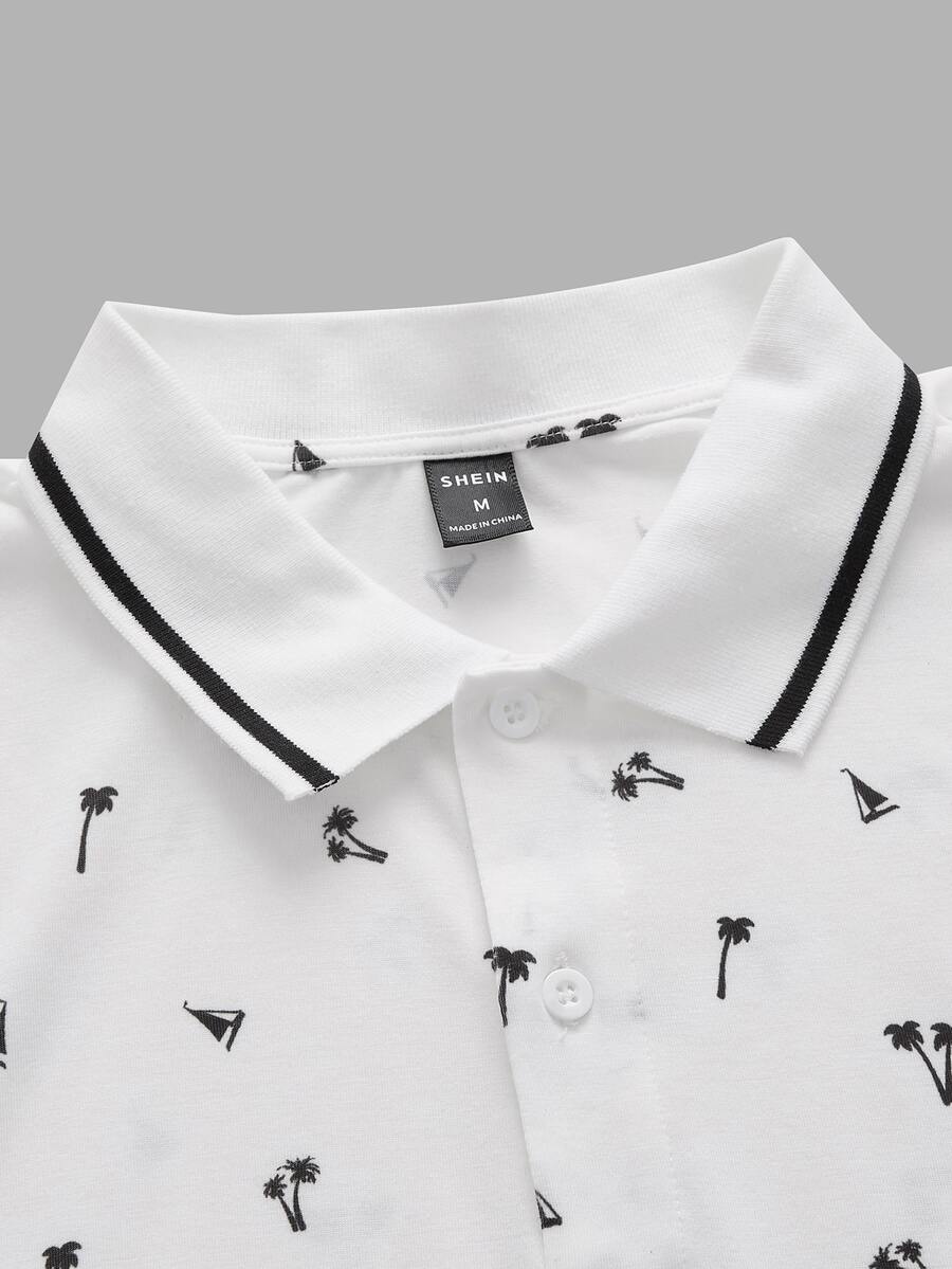 Homme Polo à imprimé cocotier et bateau à ourlet à rayures