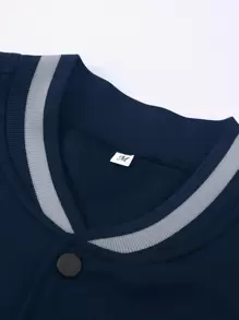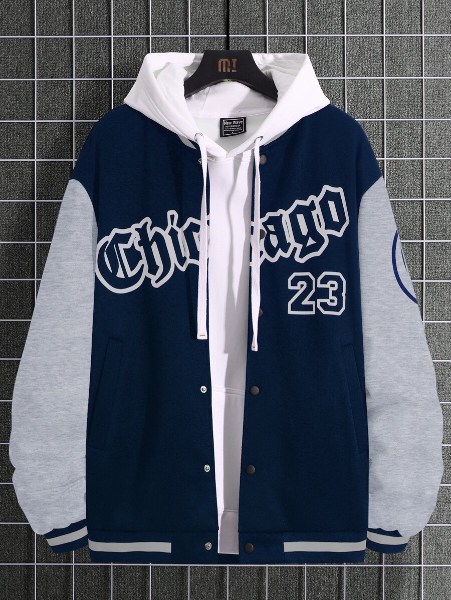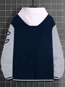 Veste Universitaire Doublée Thermique À Motif De Lettrage Et Blocs De Couleur Pour Homme, Coupe Ample Sans Capuche