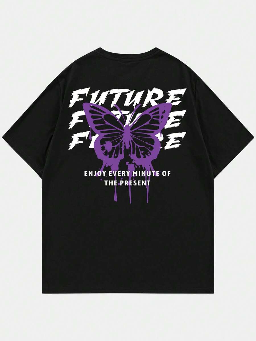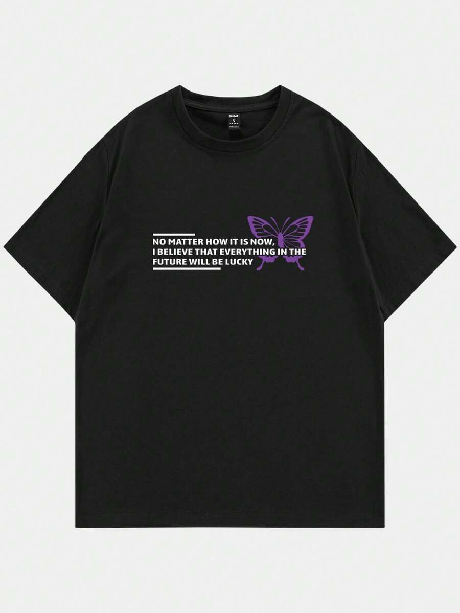 Street Life Homme T-shirt En Coton Papillon Et Slogan