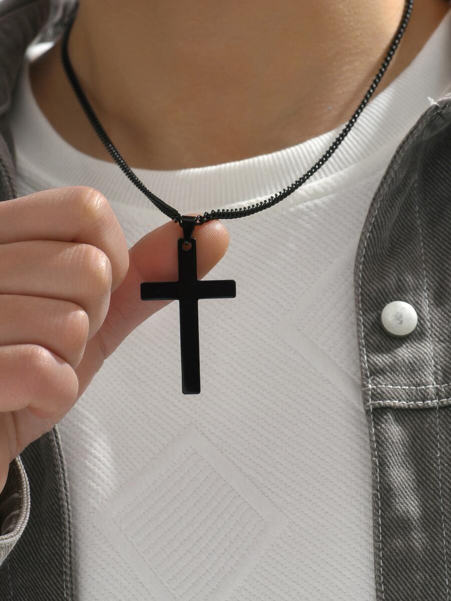 1 pièce Collier rue Hip hop style croisé noir couleur pendentif pour homme