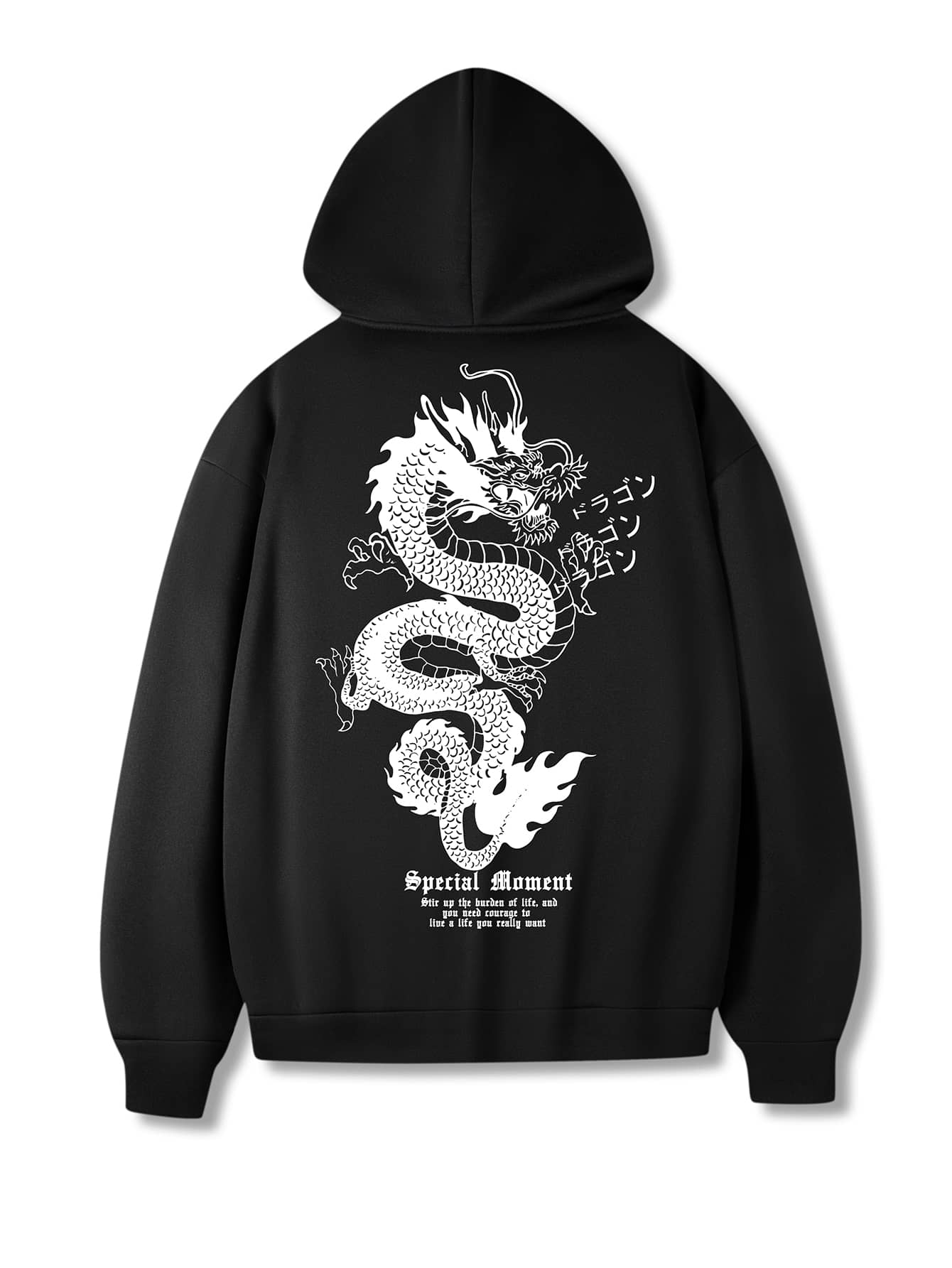 Homme Sweat-shirt à capuche dragon à doublure thermique à cordon
