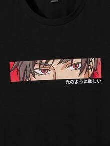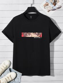 GENTILAND Homme T-shirt à motif figure et lettre japonaise