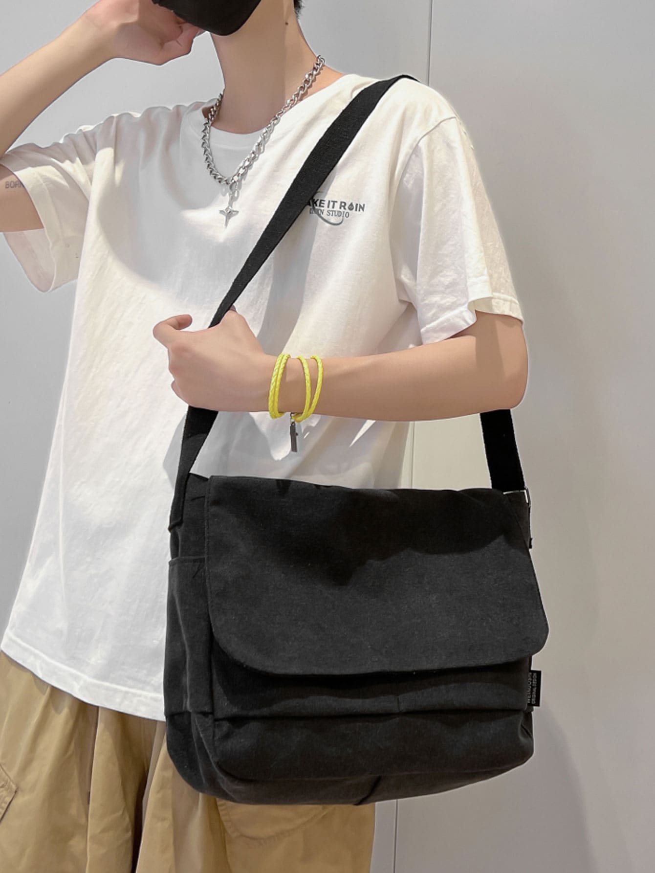 Homme Sacoche à rabat en canevas
