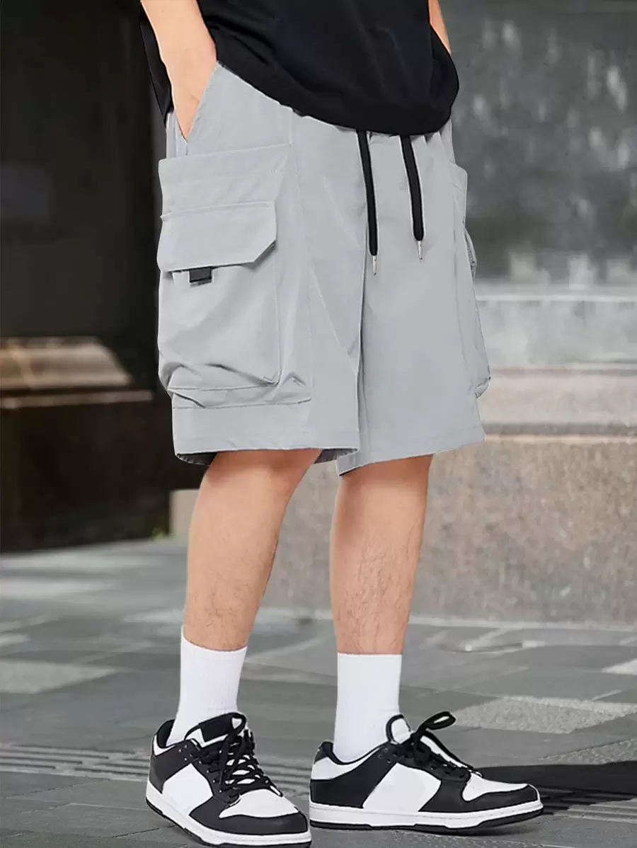 Shorts Cargo Pour Hommes À Coupe Ample Avec Poches À Rabat Et Taille À Cordon De Serrage
