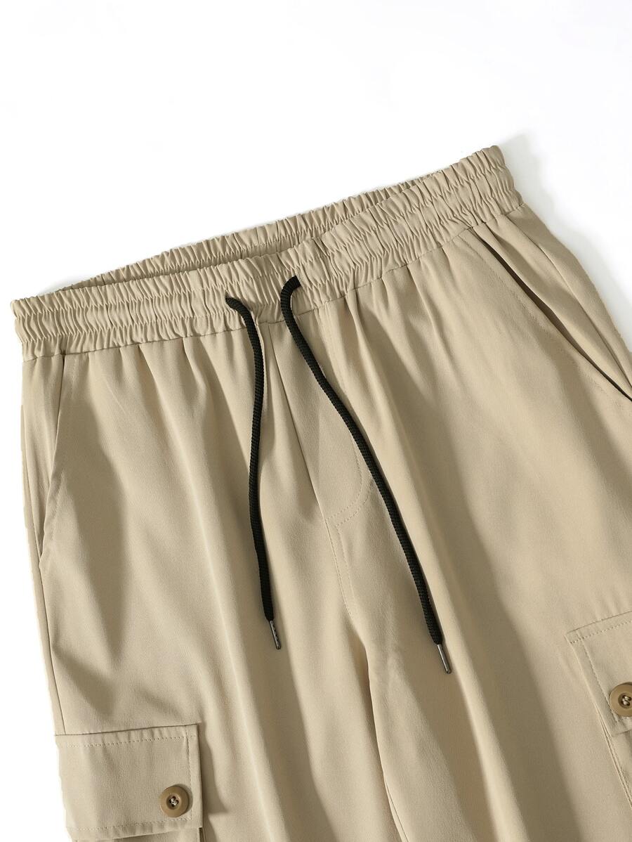 Pantalon Cargo Décontracté Pour Homme Avec Poches À Rabat, Taille À Cordon De Serrage Latéral
