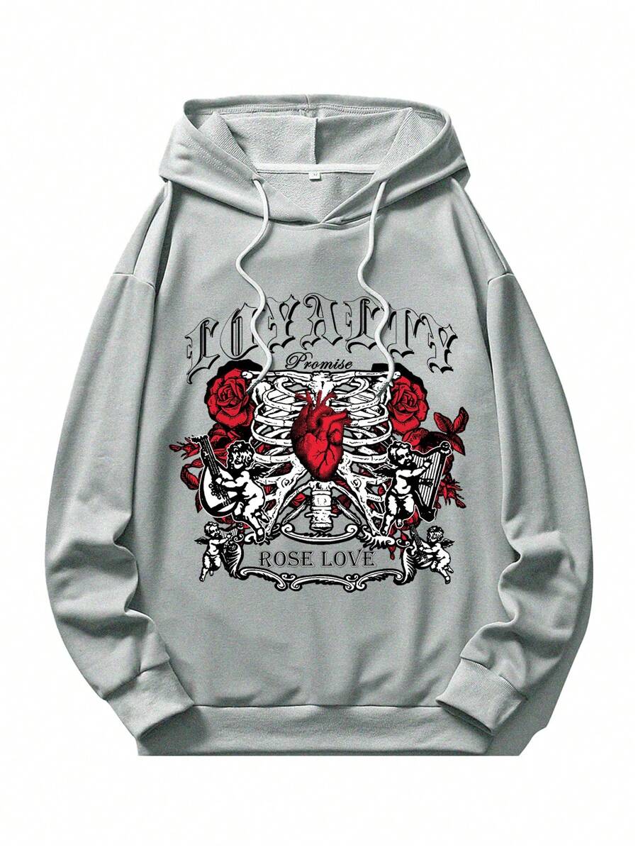 Goth Homme Sweat-Shirt À Capuche Fleuri Et Lettre À Cordon