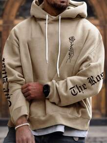 Hommes Floral & Lettre Imprimé Kangourou Poche Cordon Oversize Sweat À Capuche