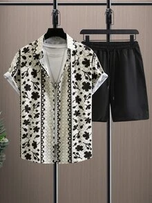 Homme Chemise à imprimé floral & Short à cordon(sans t-shirt)