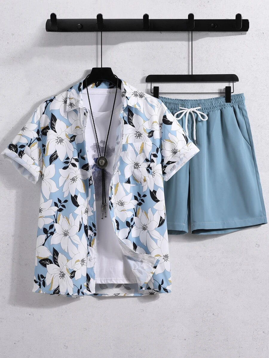 Homme à imprimé floral Chemise & à cordon Short (sans t-shirt)