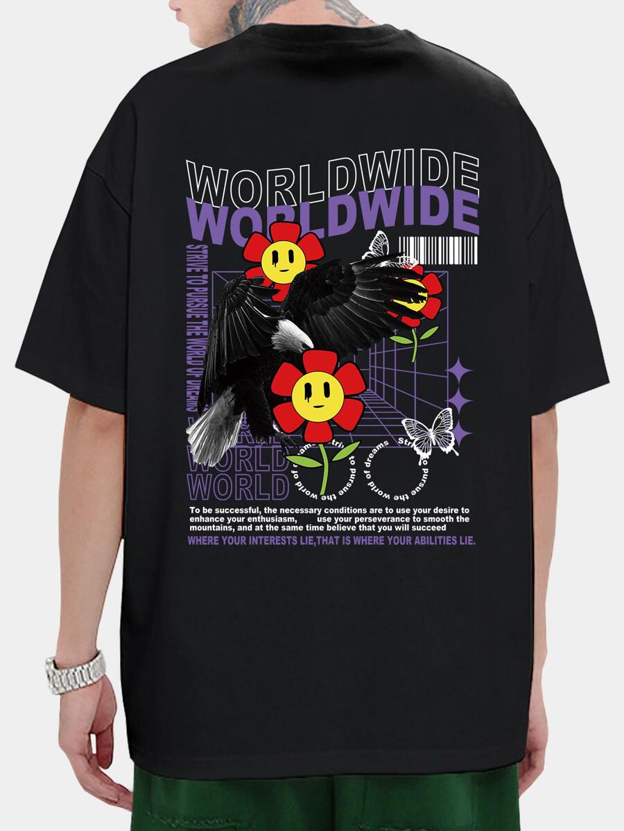 Homme T-shirt à motif slogan et floral