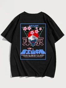 Homme T-shirt Imprimé Lettre Japonaise Et Floral