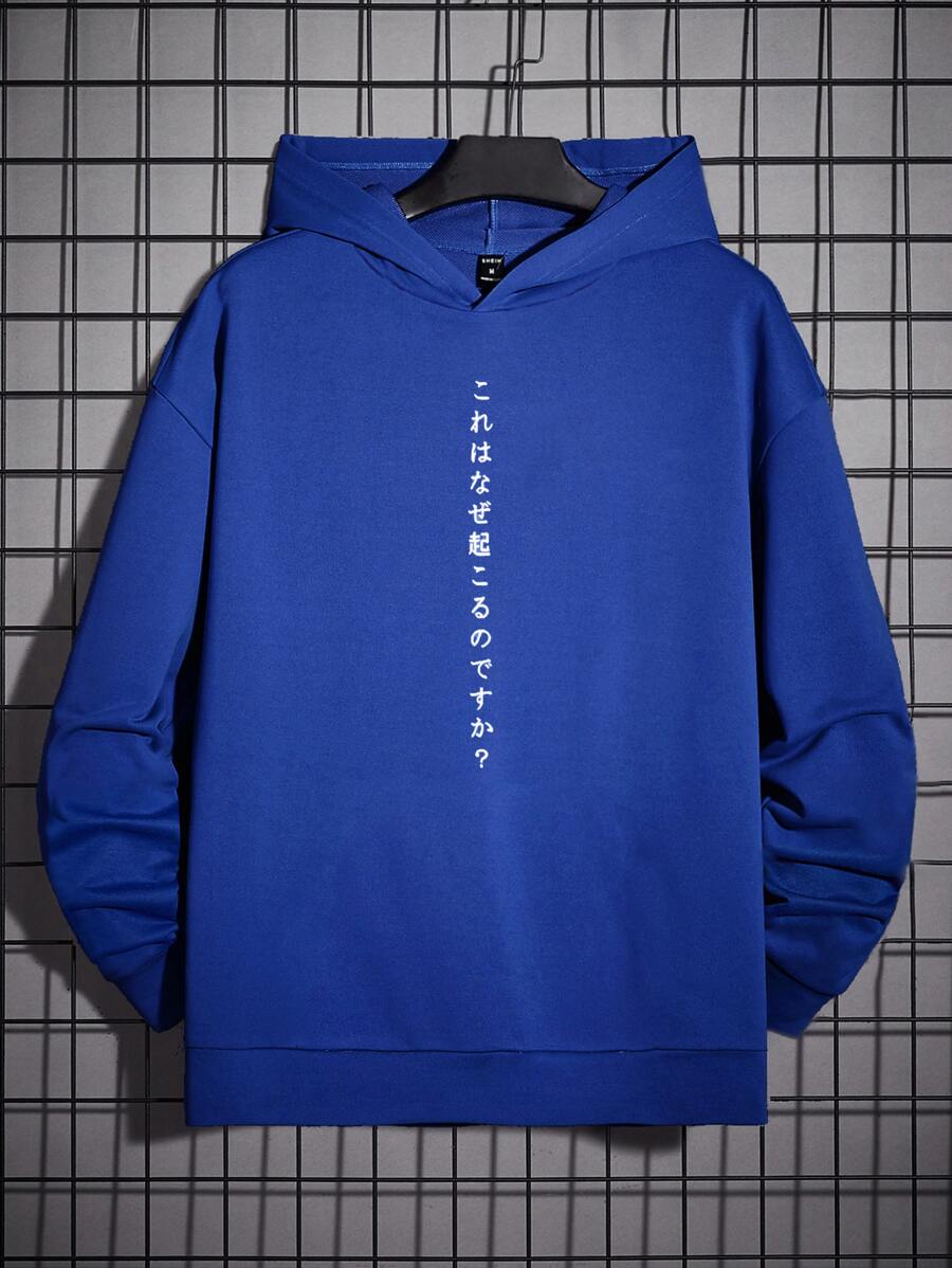 GENTILAND Sweat À Capuche Graphique À Lettres Japonaises Pour Homme, Coupe Ample