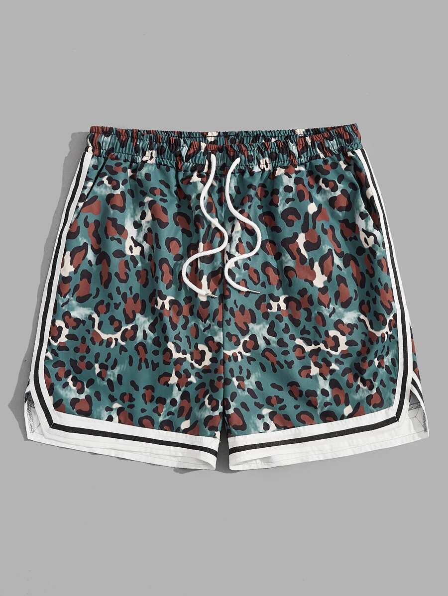 Homme Short léopard à ourlet à rayures