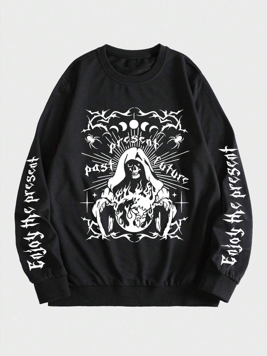 Goth Homme Sweat-shirt Squelette Et Lettre