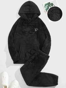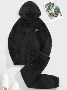 Homme Pantalon & Sweat-shirt à capuche à broderie à cordon en flanelle