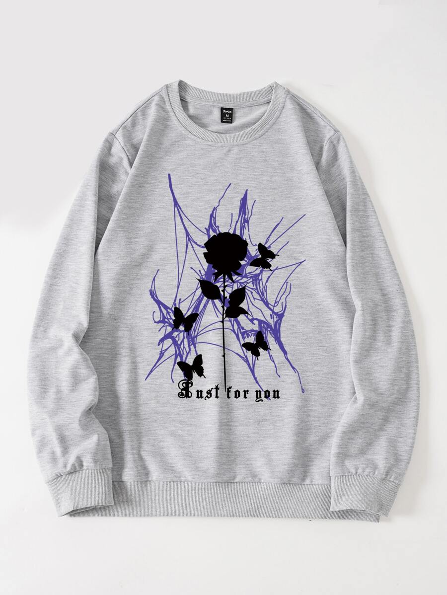 Homme Sweat-shirt à imprimé lettre et floral
