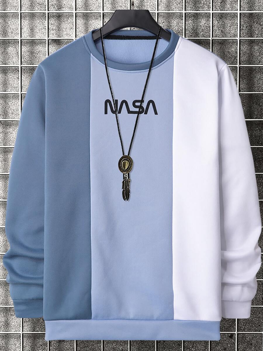 Homme Sweat-shirt à lettres à blocs de couleurs à doublure thermique
