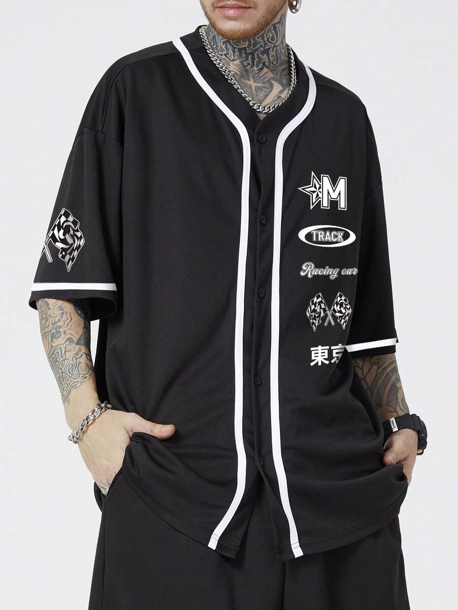 Homme Chemise À Lettres À Liseré Contrastant