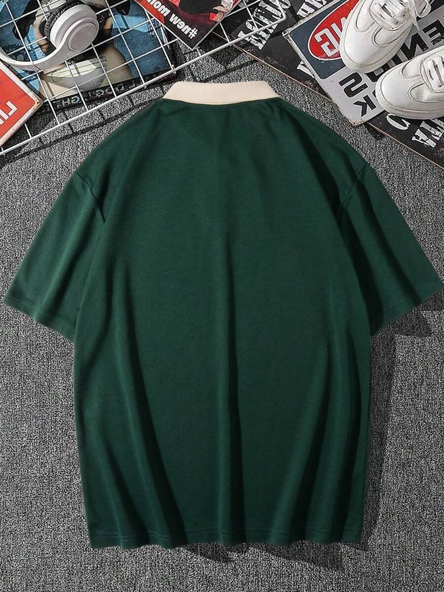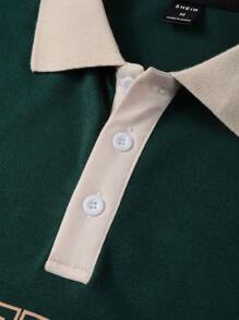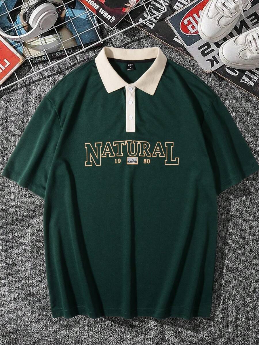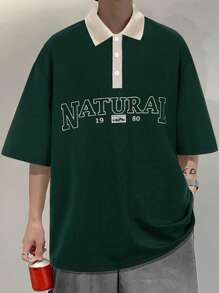 Polo Pour Homme Ample À Épaules Tombantes, Col Contrastant Et Graphisme De Lettres