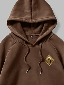 Homme Sweat-shirt à capuche à lettres à cordon à doublure thermique