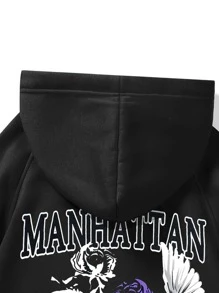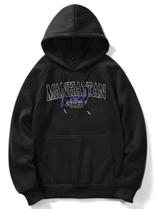 Homme Sweat-shirt à capuche thermique à lettres à manches raglan à cordon