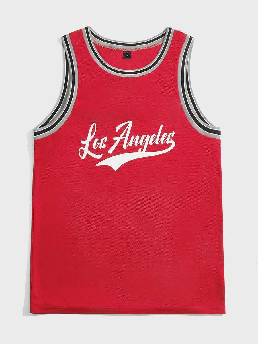 Homme Top sans manches à lettres à ourlet à rayures