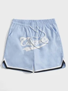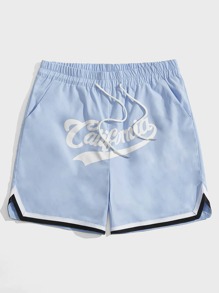 Homme Short lettre à ourlet à rayures