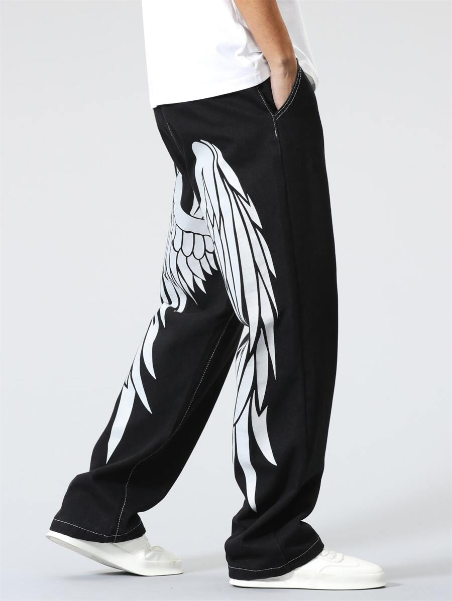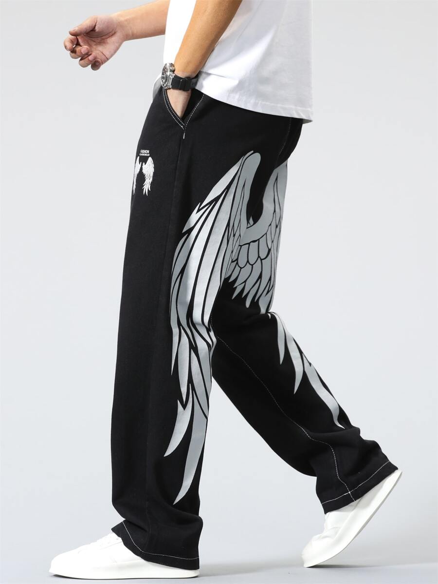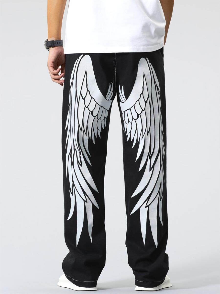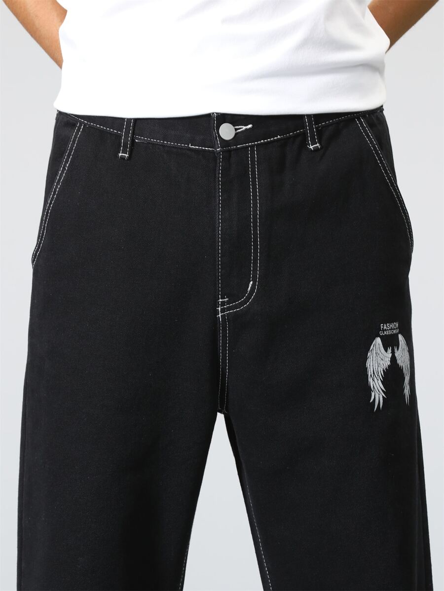 Homme Jean droit lettre & à imprimé aile
