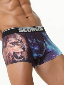 Homme Caleçon à imprimé galaxie et lion contrastant à lettres
