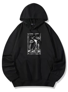 Homme Sweat-shirt à capuche à motif de champignon à poche kangourou à cordon