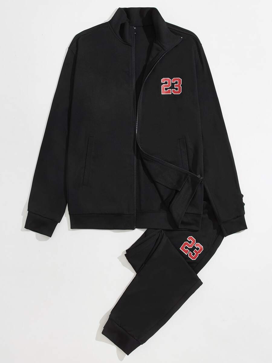 Homme Veste à imprimé chiffre & Pantalon de survêtement