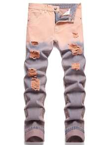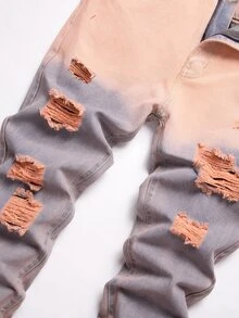 Jeans déchirés et effilochés avec dégradé pour hommes