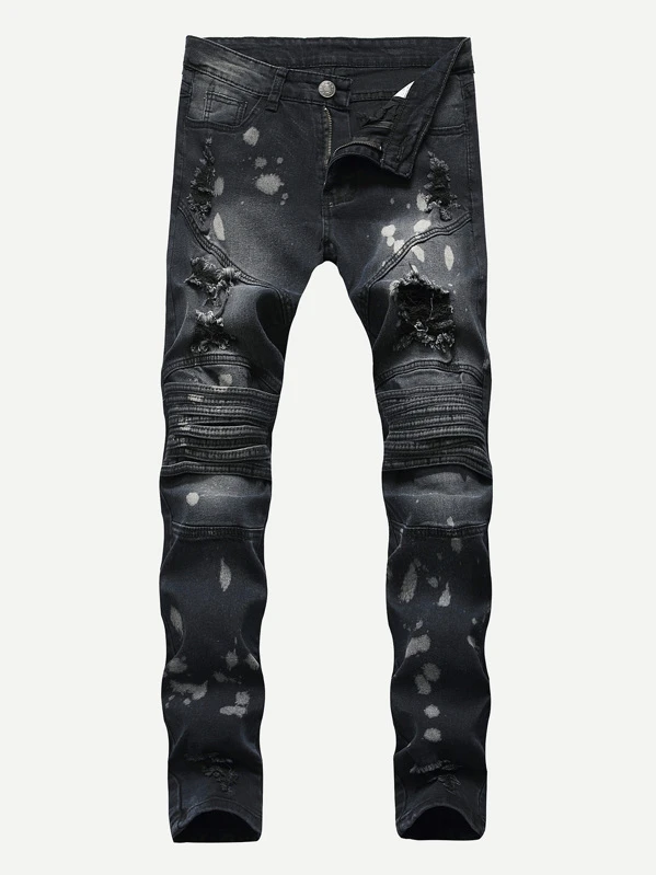 Jean déchiré délavé avec imprimé