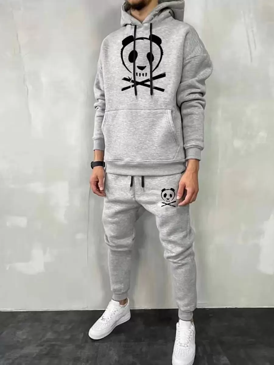 Homme Pantalon de survêtement & Sweat-shirt à capuche à imprimé panda à poche kangourou à cordon