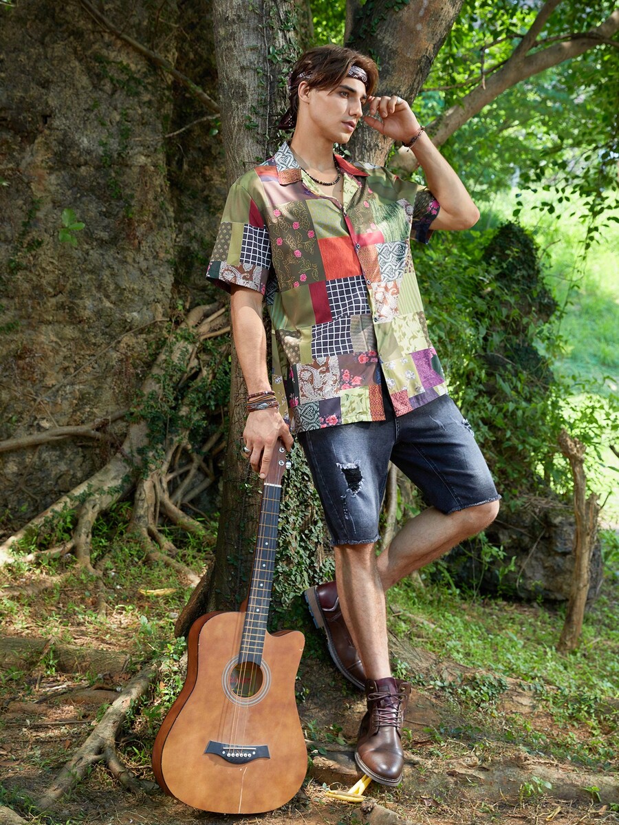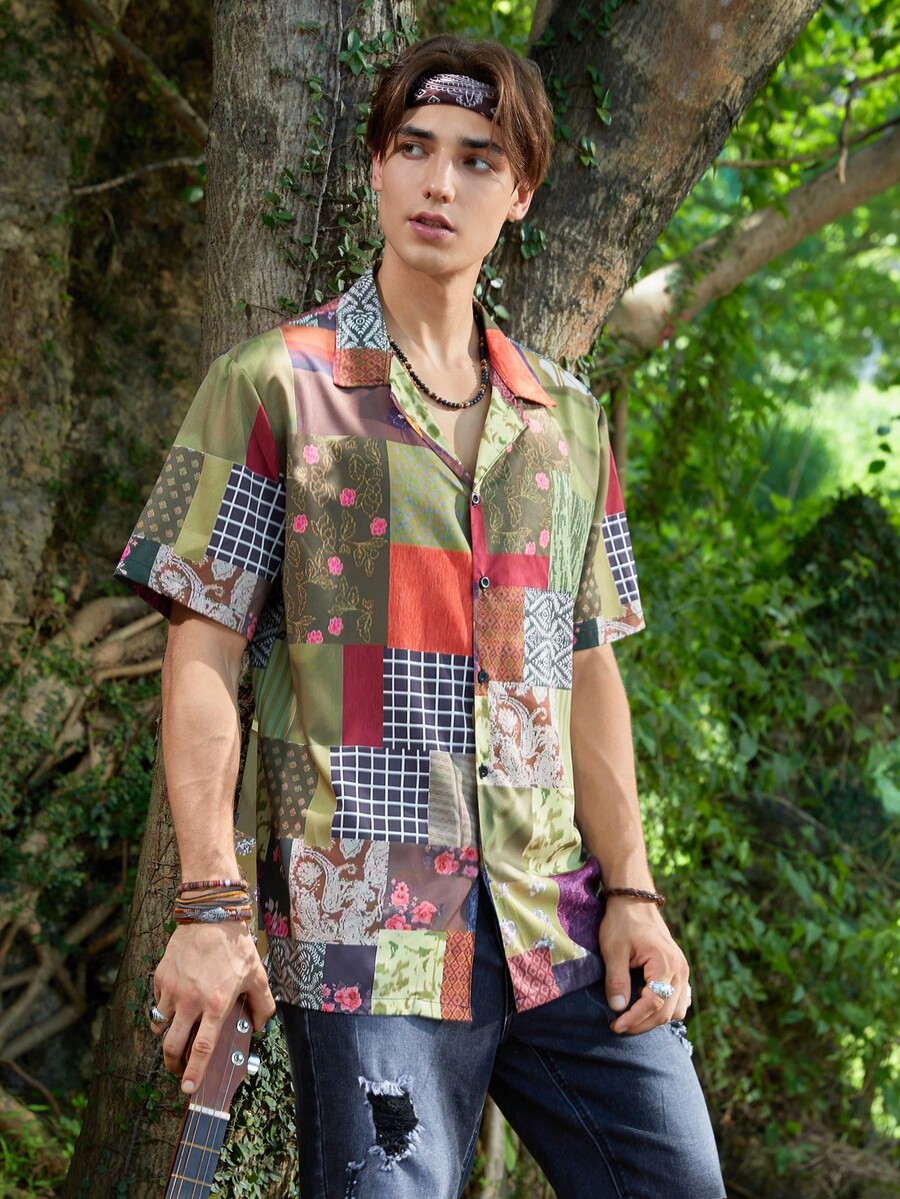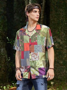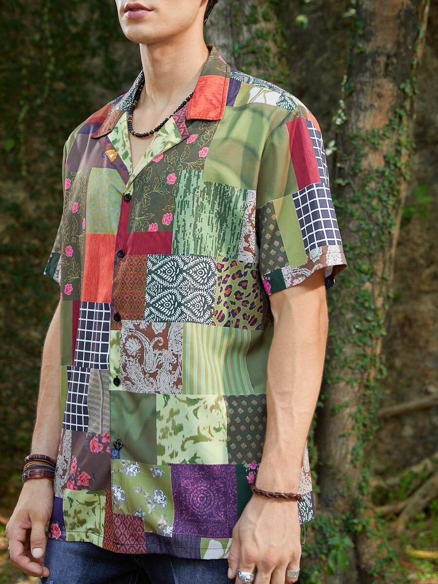 Homme Chemise Imprimé Patchwork