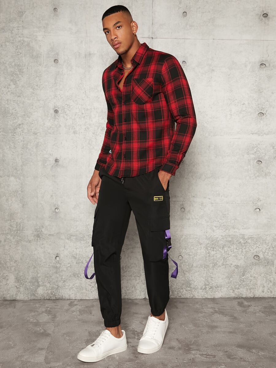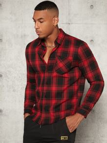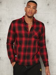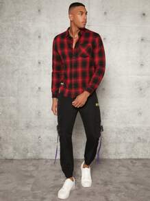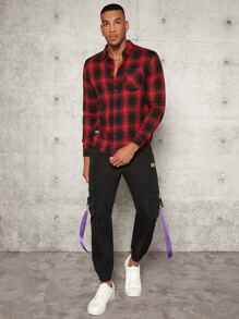 Homme Chemise à carreaux à applique à poche (sans t-shirt)