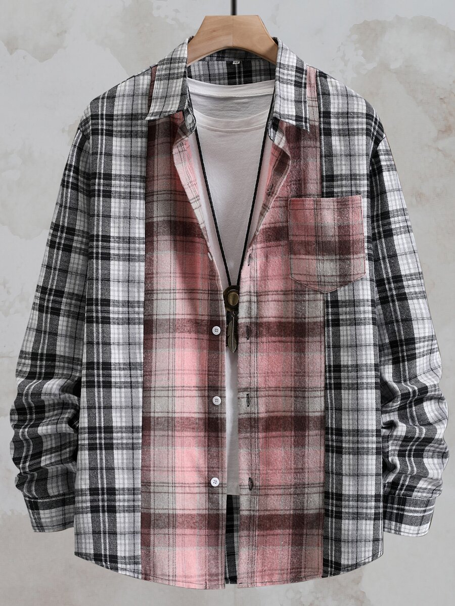 Homme Chemise à carreaux à blocs de couleurs (sans t-shirt)