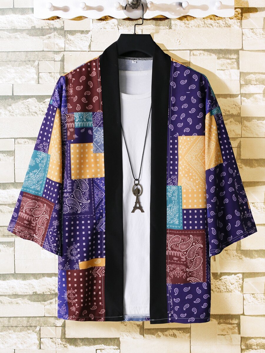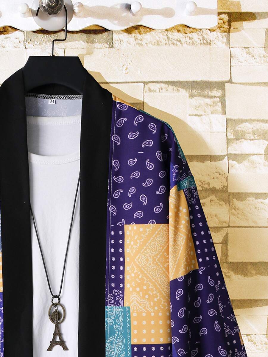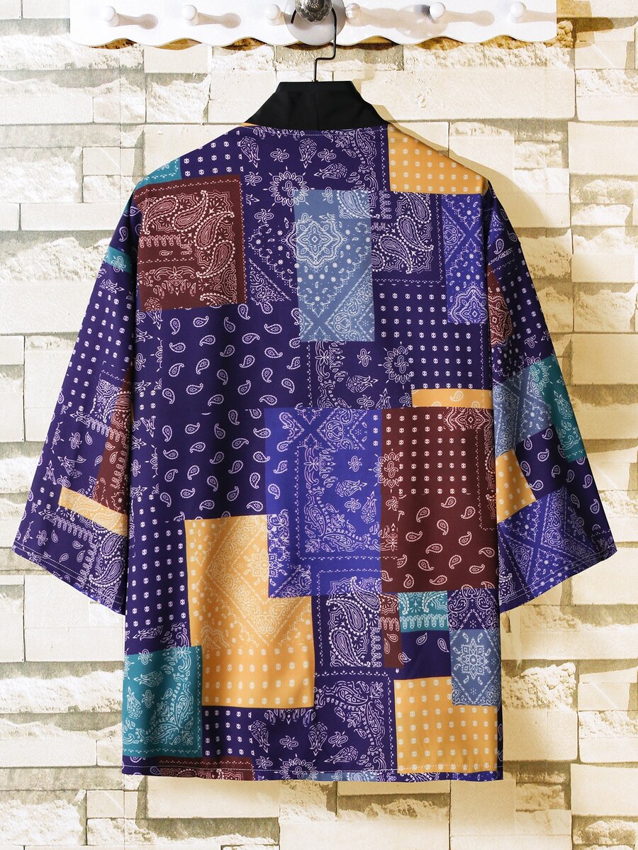 Homme Kimono chemise aléatoire à imprimé patchwork(sans t-shirt)