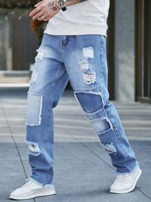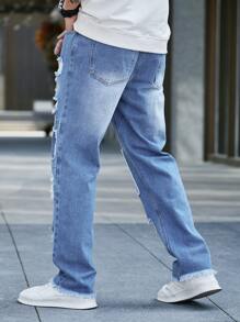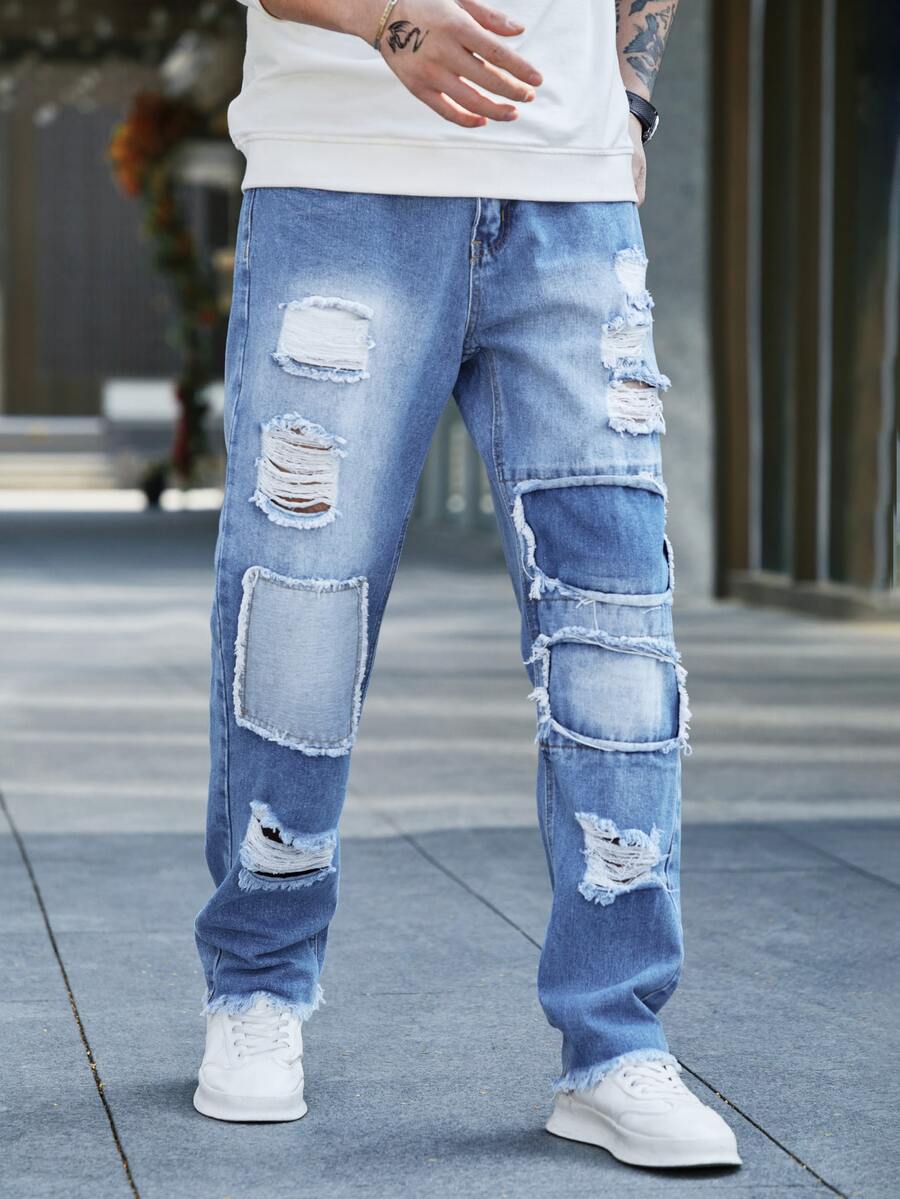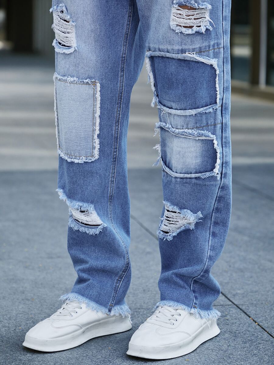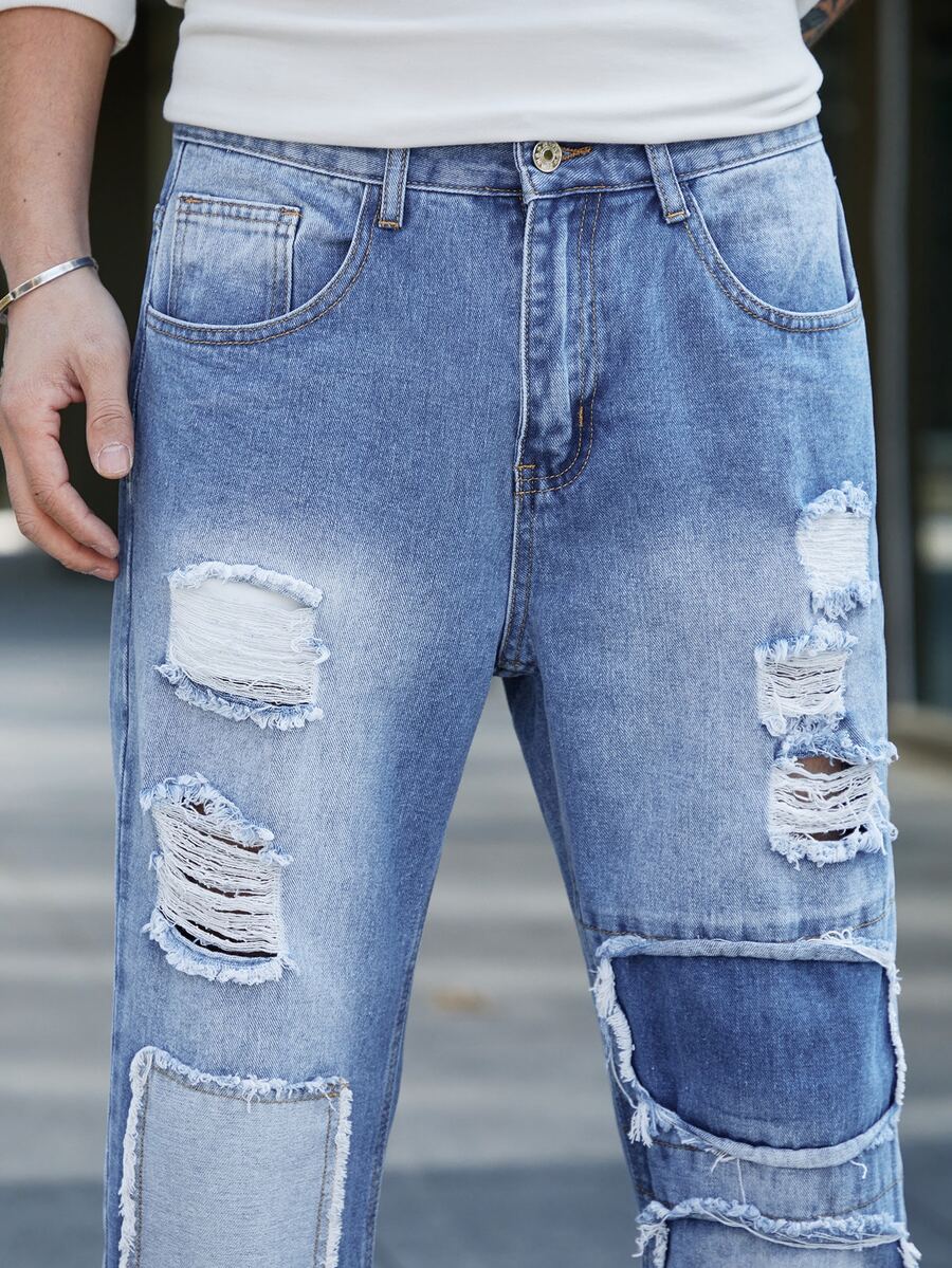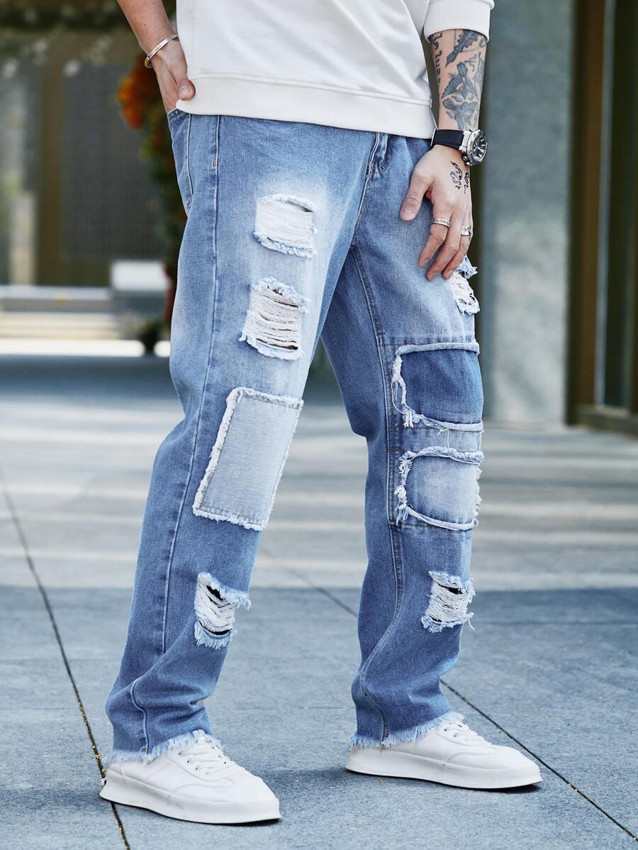 Homme Jean droit déchiré effiloché découpé à ourlet effiloché