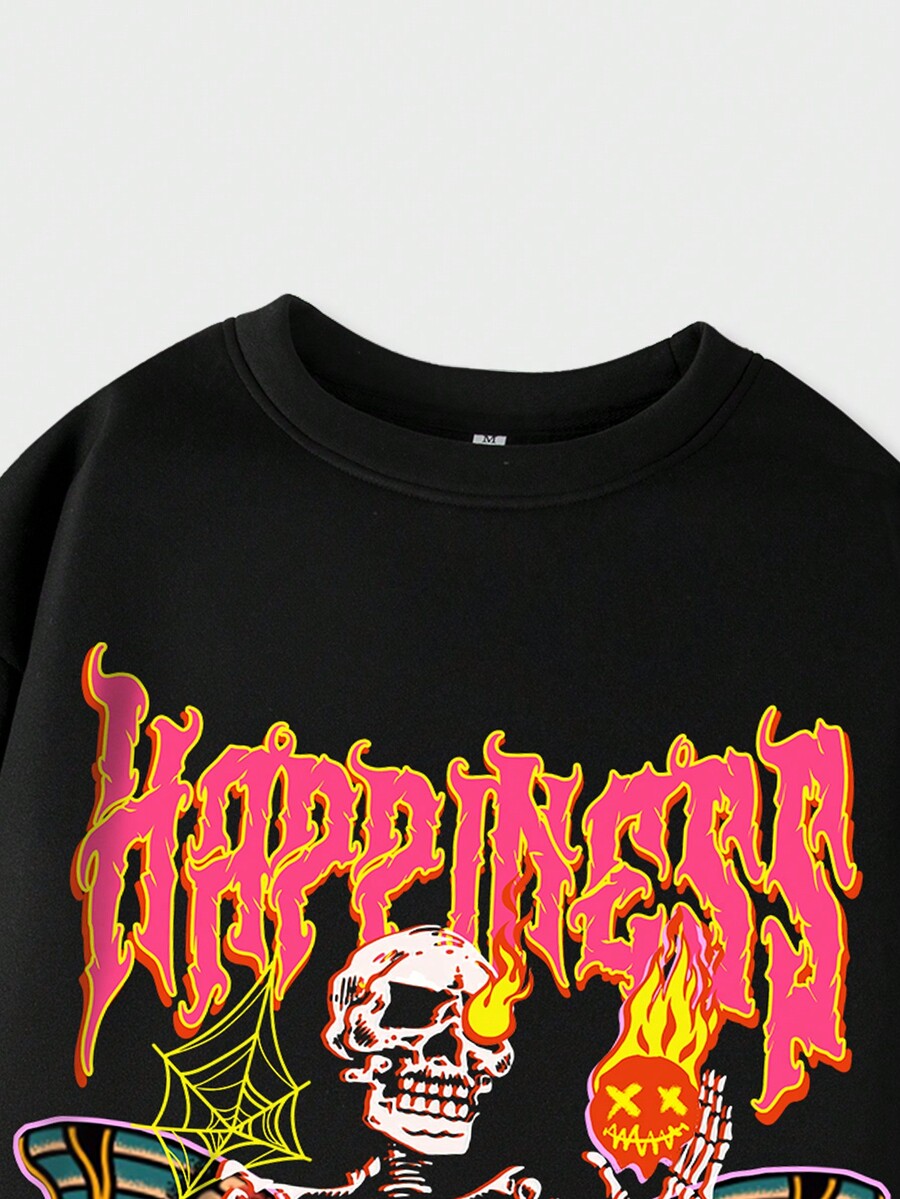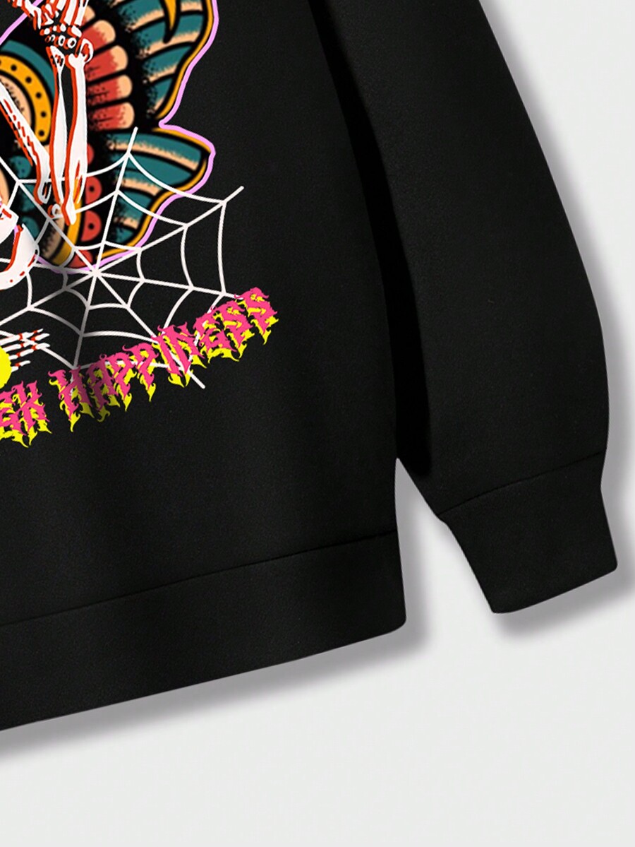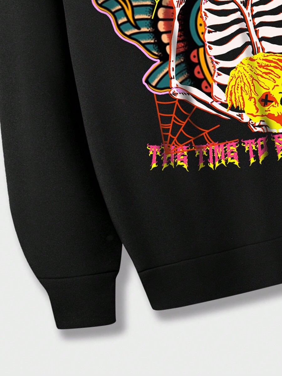 Street Life Homme Sweat-shirt Squelette & Graphique De Slogan À Doublure Thermique