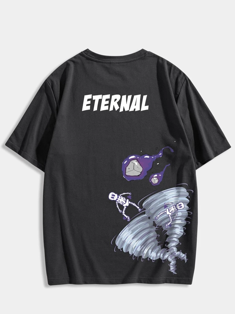 Homme T-shirt à motif squelette et lettres