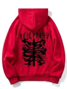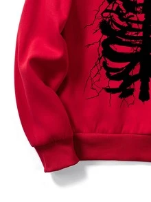 Homme Sweat-shirt à capuche à imprimé squelette manches raglan à cordon à doublure thermique