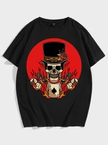 Homme T-shirt tête de mort & à imprimé flamme