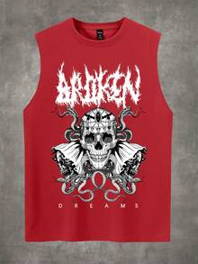 Grunge Punk Homme Top Sans Manches Imprimé Tête De Mort