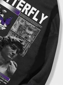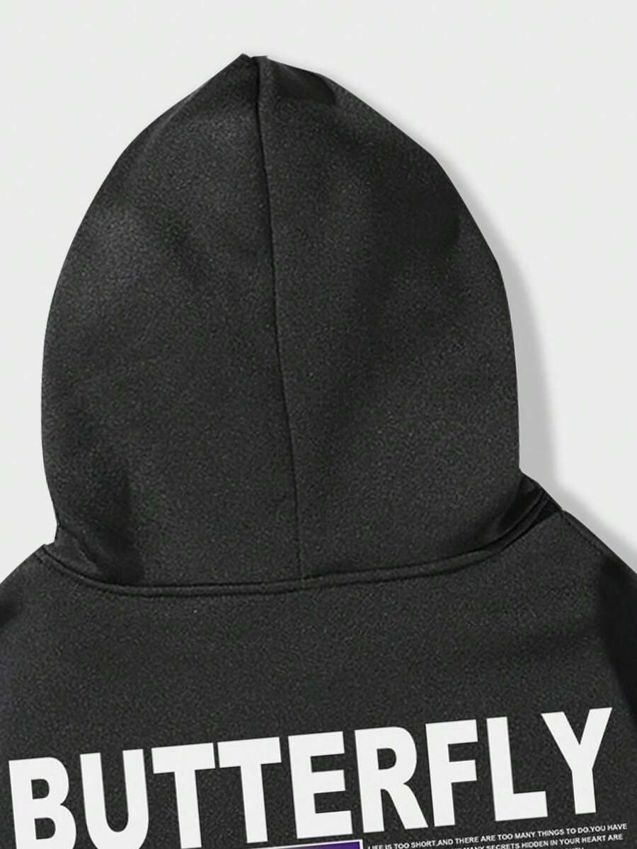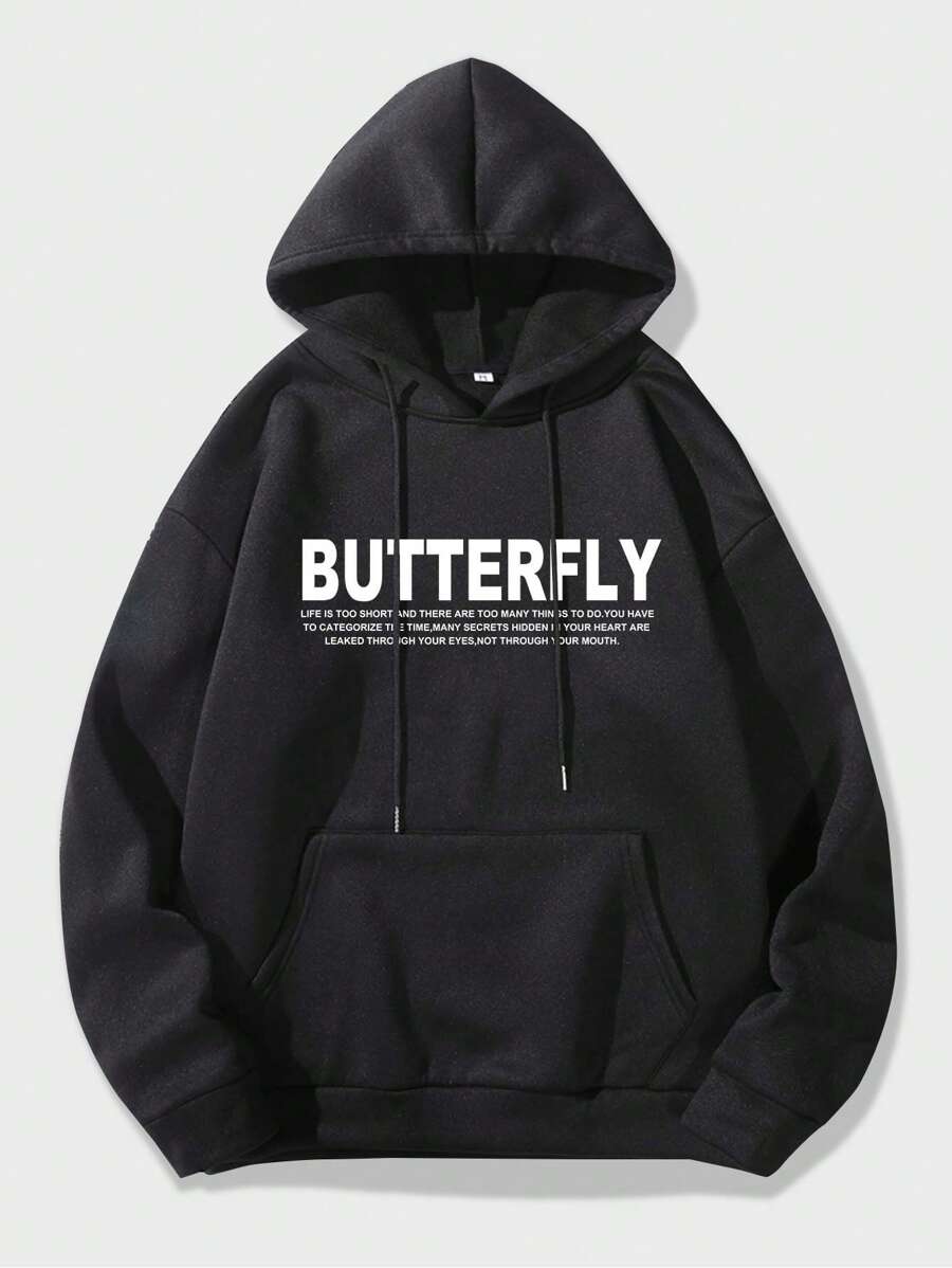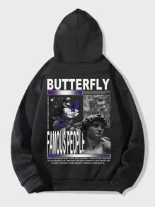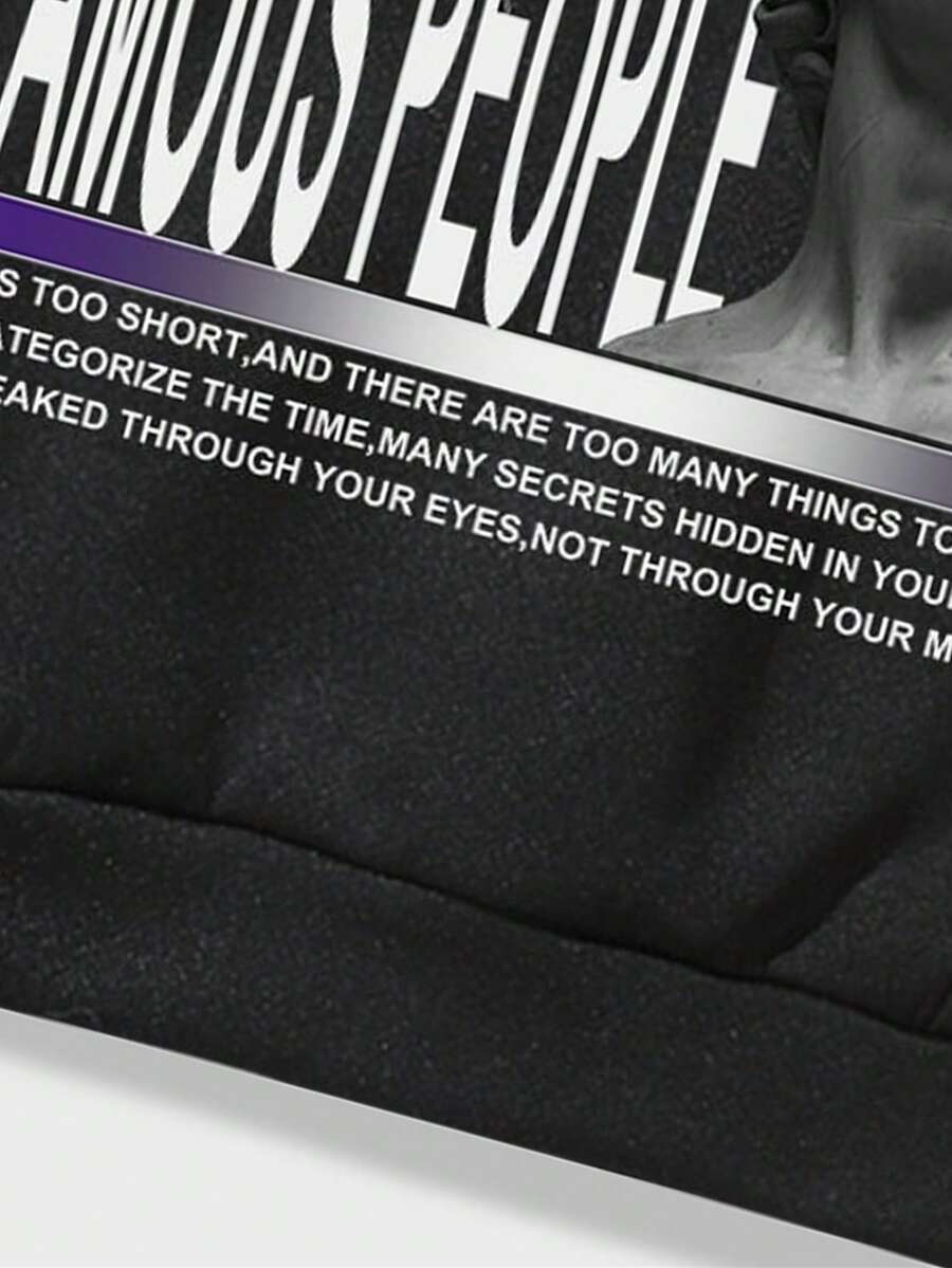 Homme Sweat-shirt à capuche thermique à motif figure et slogan à cordon