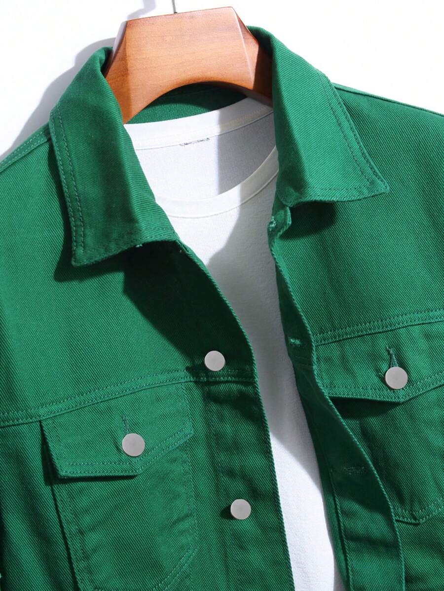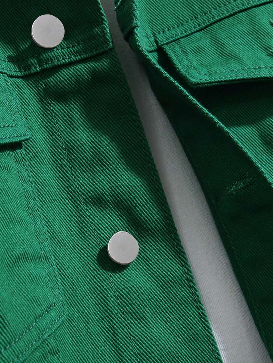 Veste en jean homme sans t-shirt, veste graphique verte, veste graphique homme, veste streetwear homme, veste en jean homme, automne