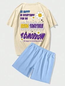Street Life Homme Short & T-shirt Graphique De Slogan