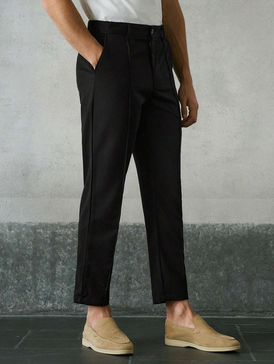 Pantalon unicolore pour homme avec couture détaillée, pantalon long effilé noir unicolore pour sortir